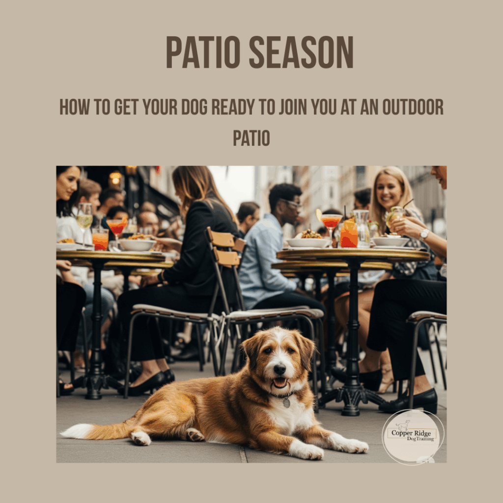The more you practice taking your dog to patios the better she will get at relaxing at them. Start slow and be consistent with what you expect from your dog in these environments. With practice and a solid down-stay or place command, you and your pup will be enjoying the summer patios together in no time.